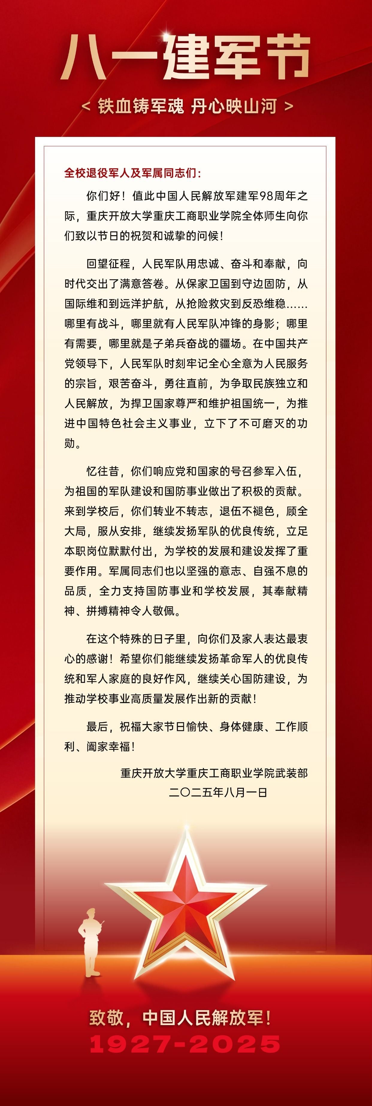 2025年“八一”建军节|致全校退役军人及军属同志们的一封信