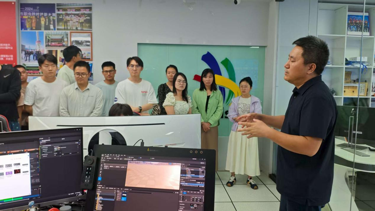 培训特邀我校国家双高专业群骨干教师唐春玲、世界职业院校技能大赛金奖团队指导教师王志勇、世界技能大赛基地责任教师冯启晏作专题讲座。唐春玲以“‘双主体、四阶段、四对接’——高职人工智能技术应用专业产教融合、育人模式实践探索”为题,系统阐释了数智时代背景下产教融合的实施路径与模式创新。王志勇结合新赛制特点,分享了竞赛指导策略与教学转化经验,强调以赛促教、以赛促学的重要意义。冯启晏则通过世界技能大赛3D数字游戏艺术项目的实战案例,生动讲解高技能人才培养的关键环节与方法体系,并组织参训教师实地参观我校世赛集训基地,增强沉浸式体验与直观认知。