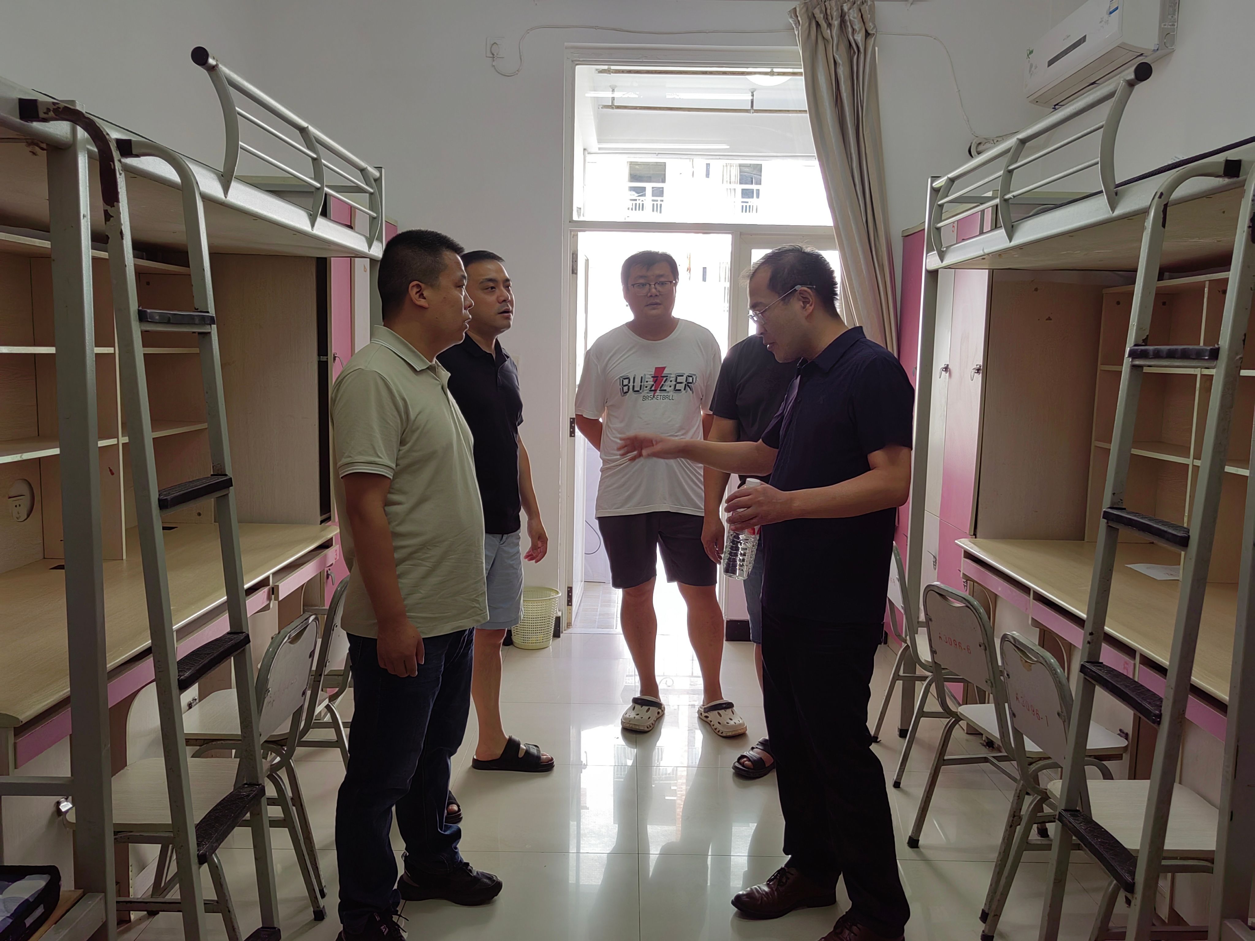 在学生宿舍,南旭光逐一查看暑期维修、环境整治、宿舍设施设备、公共卫生清洁、安全设施运行等状况。他强调,后勤管理处要牢固树立安全底线意识,进一步细化措施,全面排查重点领域风险隐患,为全校师生营造安全、有序、整洁、和谐的学习生活环境。