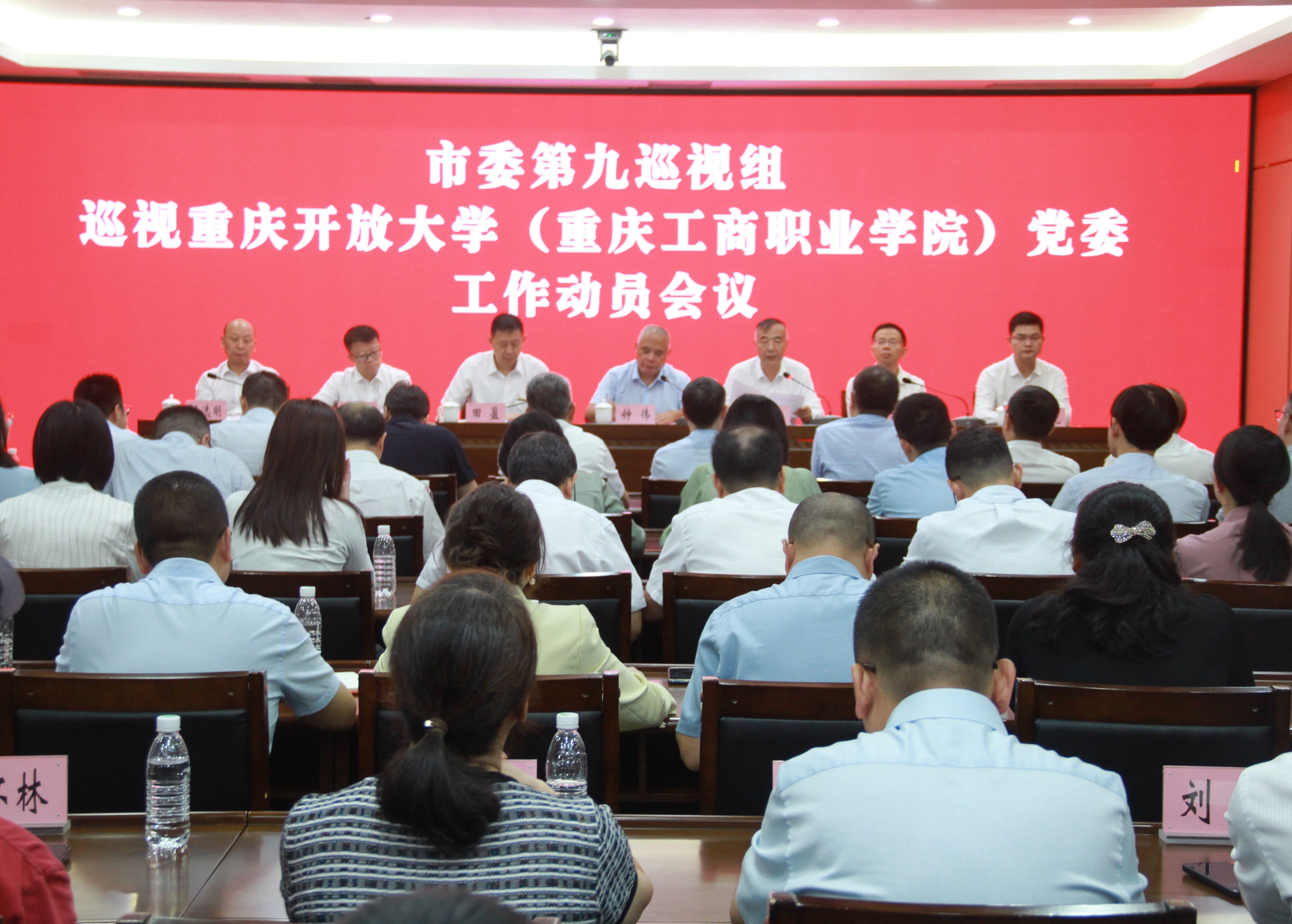 市委第九巡视组副组长及有关成员,重庆开放大学(重庆工商职业学院)党委领导班子成员出席会议;其他在职市管干部,学校职能部门、二级学院主要负责人,部分职工代表、离退休职工代表等列席会议。