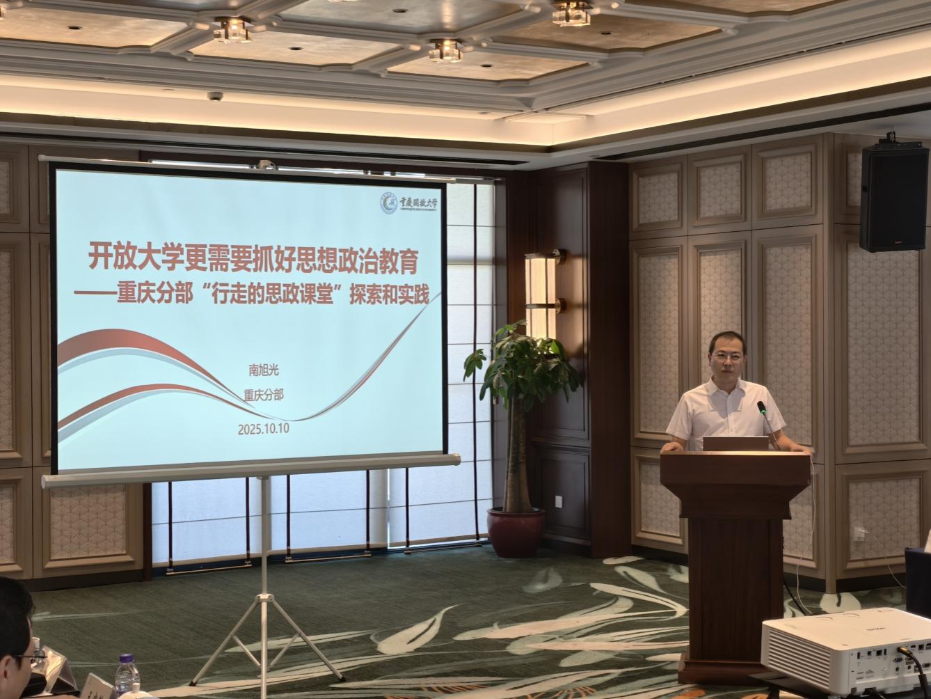 南旭光以“开放大学更需要抓好思想政治教育——重庆分部‘行走的思政课堂’探索和实践”为题介绍了学校深入推动开放教育思想政治教育的实践探索。