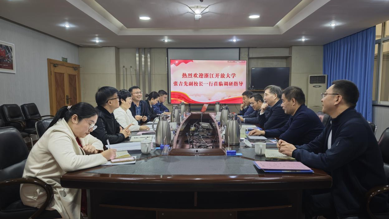 【供稿/继续教育学院】为深化开放大学体系内交流协作,共探新时代开放教育高质量发展的创新实践,近日,浙江开放大学副校长张吉先一行来校开展专题调研。副校长谢义华出席并主持座谈会。