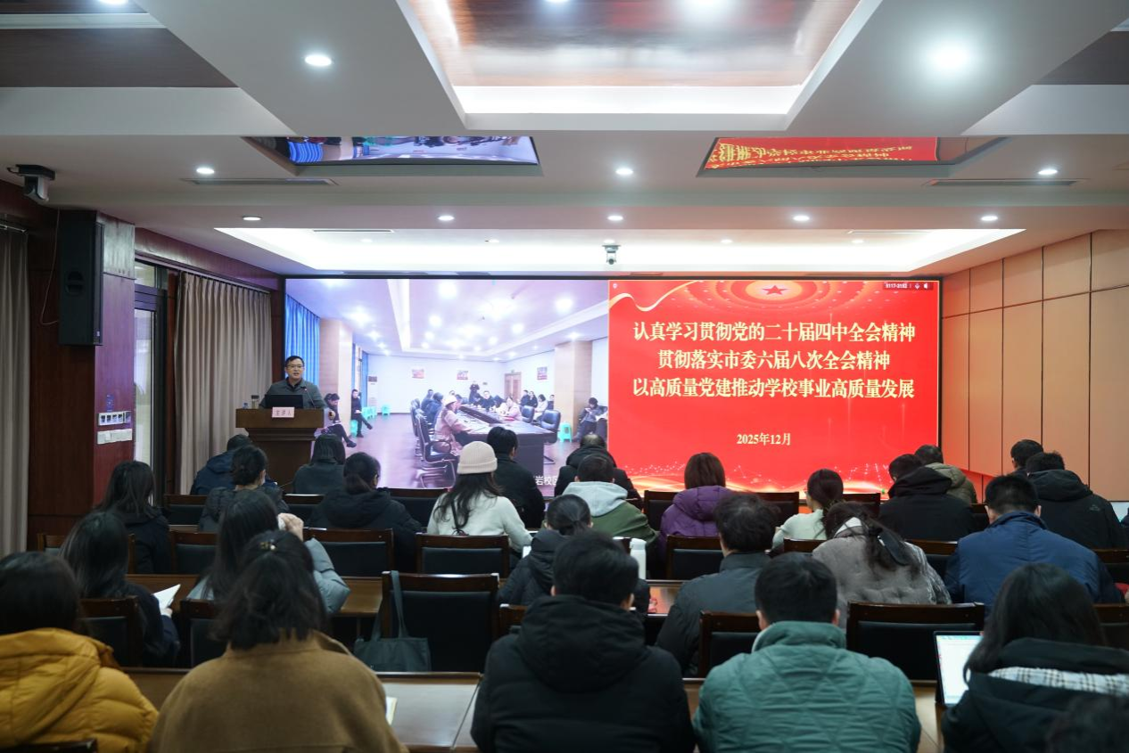 【供稿/设计学院】12月24日,党委委员、副校长罗晓良以“认真学习贯彻党的二十届四中全会精神,贯彻落实市委六届八次全会精神,以高质量党建推动学校事业高质量发展”为题,面向机关四党总支、设计学院党总支全体教职工开展专题宣讲。