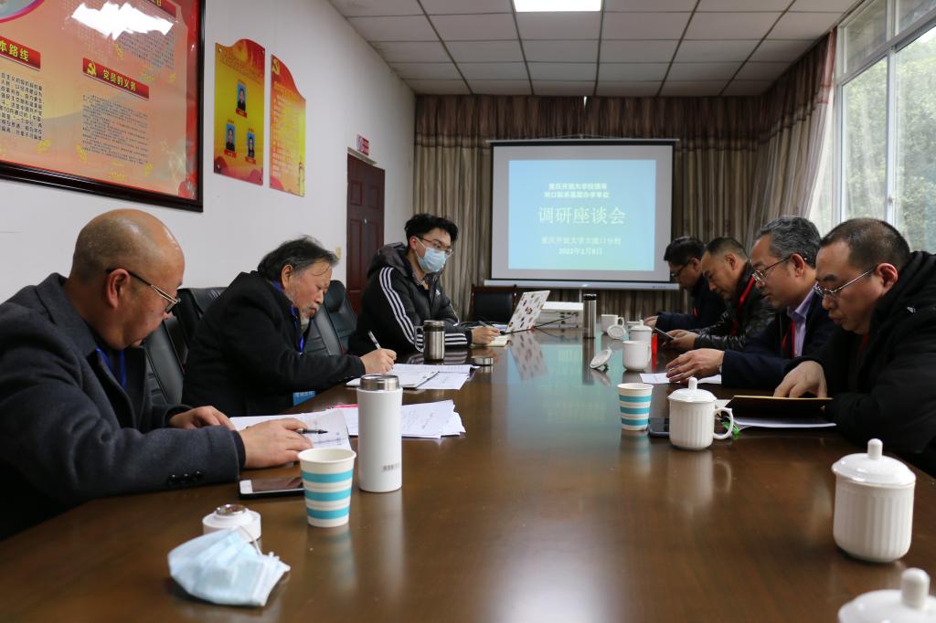 巡考结束后,召开基层办学单位调研座谈会。会上,大渡口分校校长杨富强就分校办学条件建设、推进立德树人与“三全”育人、落实“创优提质”和“三治”措施、开展“迎评促建”、疫情防控与考试组织等方面工作进行了汇报。