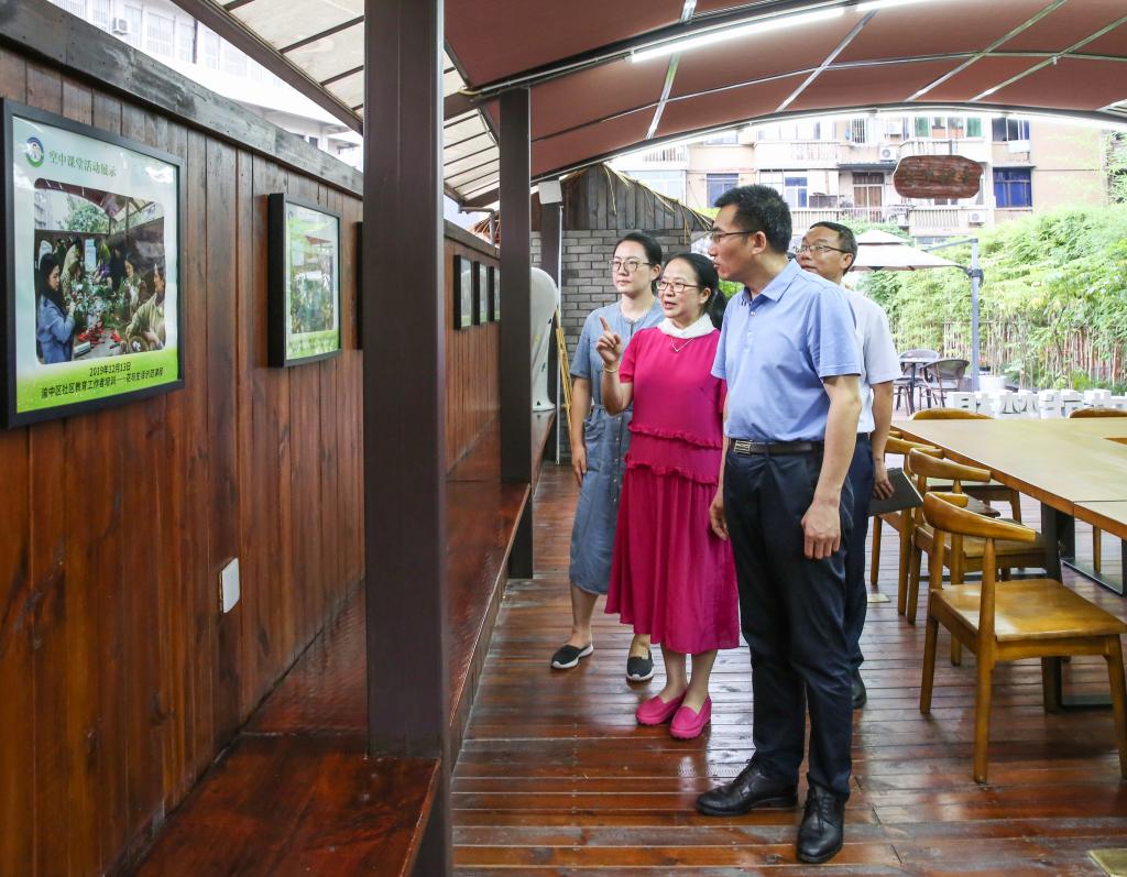 【供稿/渝中分校】6月21日,渝中区人大常委会主任何积光在区人大教科文卫委主任委员康洪英、区教委副主任杨勇的陪同下,莅临重庆广播电视大学渝中区分校调研渝中区成人教育和社区教育工作。在学校领导班子的陪同下,何积光一行参观了学校校园文化建设,实地了解了学校考试工作。