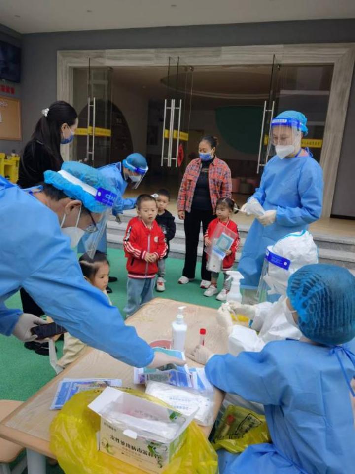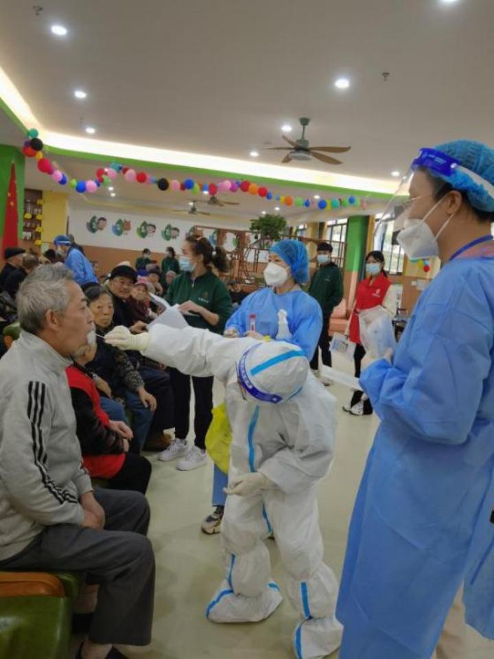 志愿者小分队准时到达检测点,在医务人员的指导下穿好防护服到位上岗,做好秩序维护、信息登记、分发检测试管采样器及后勤保障工作。同时配合医务人员为养老院老人、幼儿园小朋友及出行困难群众送检上门。各项工作有序进行,两天共计协助完成近3000例核酸样本采集,圆满完成支援社区核酸检测任务。