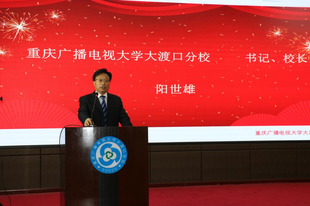 区教委张荣庆副主任代表区教委对电大开学表示热烈祝贺,对教职工表示亲切的问候。他充分肯定了大渡口分校服务区域人才培养做出的贡献,要求学校抓住重庆开放大学综合改革发展的新契机,以学历教育为基础、以构建终身教育体系为主线,服务于学习型、技能型社会建设,助力打造“有品质、有内涵、有情怀”的大渡口区教育。
