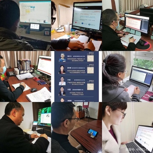 根据疫情防控要求,教职工调整工作状态居家办公,充分发挥电大远程教育优势,多形式做好与学生的沟通,平稳有序推进各项工作。教学上,直播教学、作业辅导、作业批改、论文答辩一样不落下。为提高直播教学到课率,班主任通过电话、短信、QQ群等方式提醒学生按时收看,值班教师随堂跟进,实时公布到课情况,特殊情况无法到课的可观看视频回放,做到对每一位学生负责;一网一平台的运行,出现了各种各样非常棘手的问题,学生无法顺利的完成课程学习,老师们便及时与分部技术人员进行沟通寻找解决办法,同时做好学生的安抚工作,并指导学生按要求完成线上线下形考作业。教务上,学校组织每位老师线上参加国家开放大学关于开放教育教务管理系列培训,增强教师业务能力和服务水平。学籍管理、学籍异动、学生信息变更、毕业照片及毕业审核、学士学位管理、考务管理等工作规范有序进行。