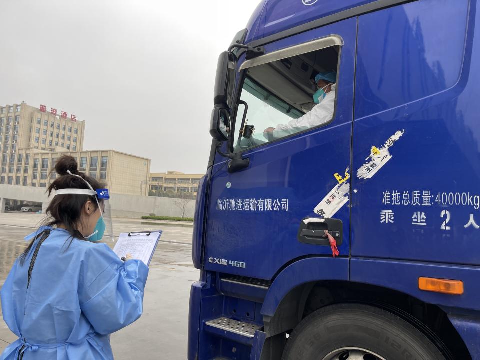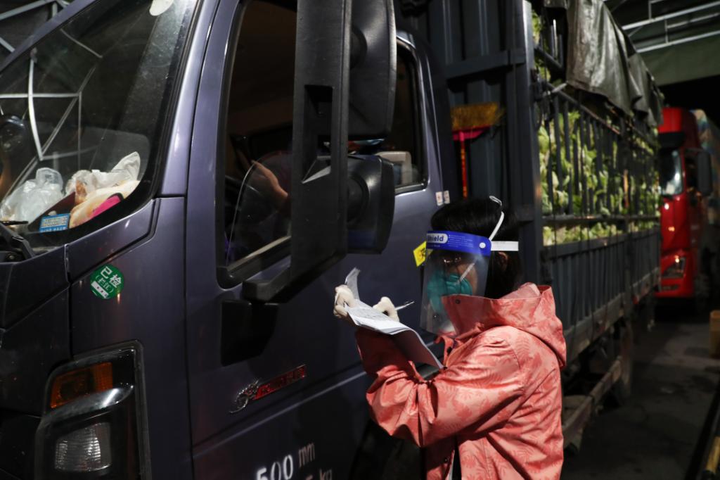 何婧、车舵、李涵等党员进驻的小组主要对货车进出农商城进行登记排查。每天对来往的货车查验司乘人员“两码一证”,并督促车内人员立即扫描场所码并进行核酸检测,随后在车门处贴上封条,告知采购人员,要严格做到“人不下车”,由市场内的工作人员帮助其完成采购工作,实行24小时全天候值守制度。