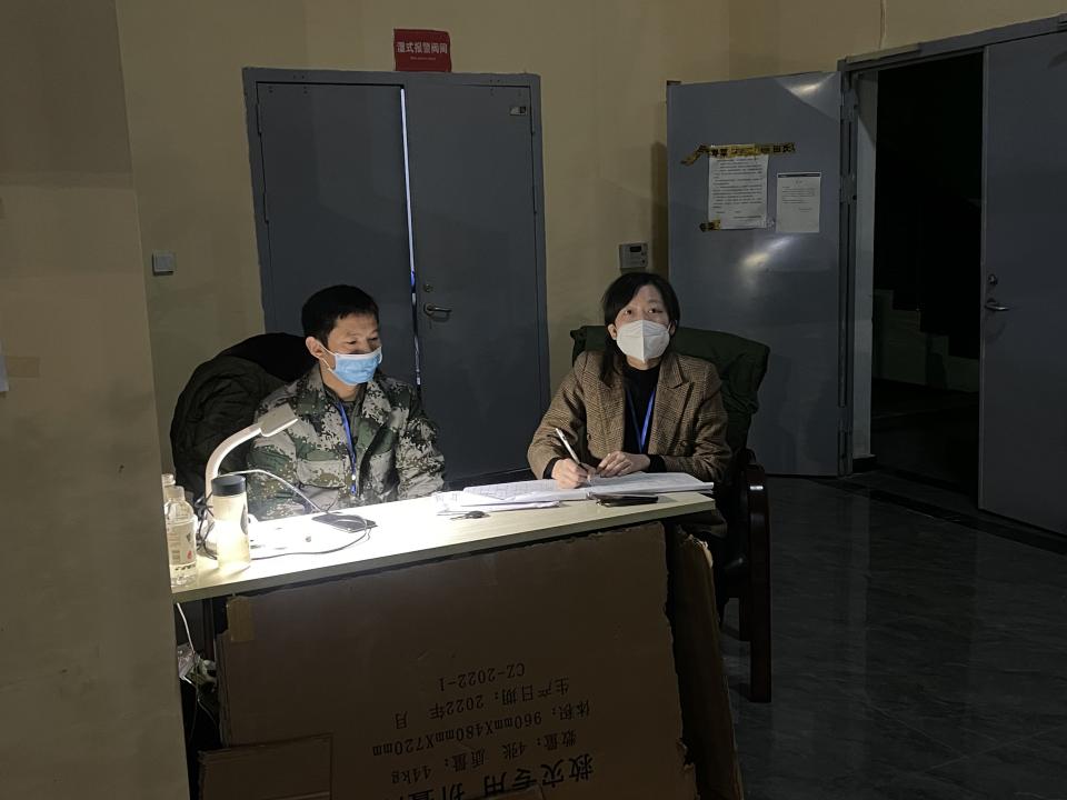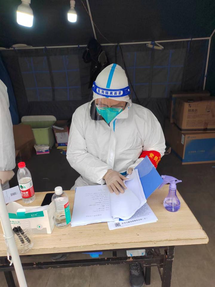 办公室主任赵新雅等党员进驻的小组主要对员工宿舍进行管理。目前完成了14号楼全部住户摸排、登记;在楼栋口24小时值守,对住户出入楼栋进行登记,做好记录,对需要离开农商城外出的住户及时提醒其按规定程序申请上报;对进入楼道人员进行测温,查看其24小时核酸阴性证明、健康码和行程卡绿码方可放行,实行24小时全天候值守制度。