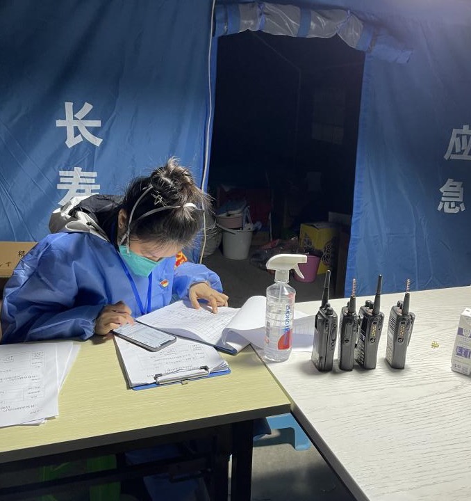 11月11日至今,年轻党员教师李文阳、徐佳青主动参与城区菩提街道高速出口的疫情防控工作,分别担任两个高速卡口点长,主要工作是查验两码一证、抗原检测、劝返无正当理由和核酸超时来长外地车辆、协助返长人员做好信息推送和社区报备。目前,高速路口已实行24小时防疫值守,十一月的夜晚已经很寒冷了,两位教师克服各种困难,尽职尽责,无论白天黑夜,无论刮风下雨,都和本组志愿者齐心协力确保“不漏一车 不漏一人”,守好入口关,为全区人民筑起防疫安全屏障。