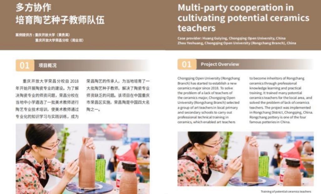 2022年11月,陶艺种子教师队伍培育方面的实践探索,入选了联合国教科文组织开放远程学习姊妹大学网络优秀案例。