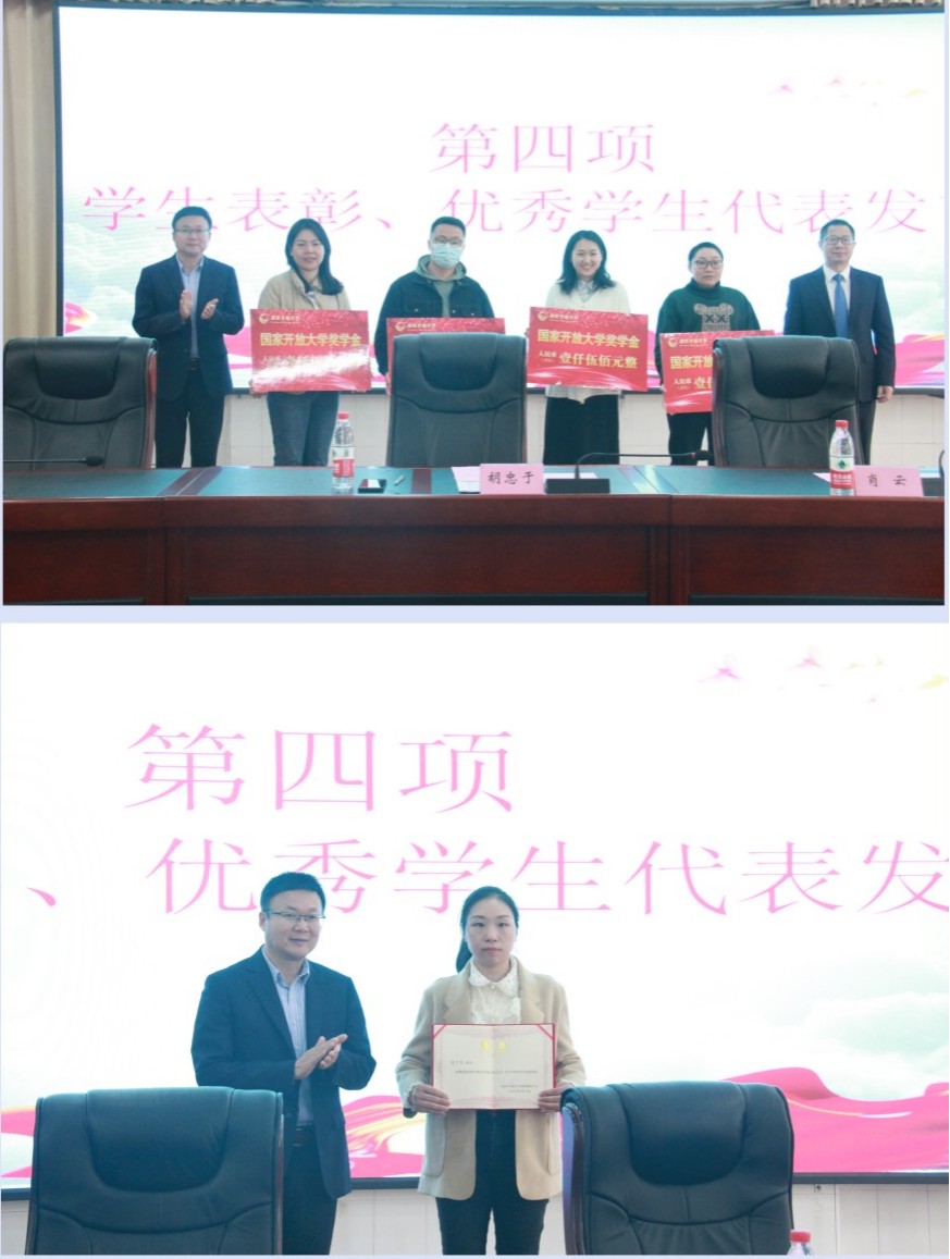 会上,肖云副校长向全体新生表示热烈欢迎,介绍了学校班级管理服务团队、招生及教务教学团队,表示巴南分校将致力于为每位同学成就梦想搭建舞台,从教学质量、学习服务、创新创业等方面为同学们的成长提供更多保障。学校领导为4名获得2021年度国家开放大学奖学金的学生颁发荣誉证书和奖学金,为2022年度重庆开放大学督导员颁发了聘书,勉励所有新生向获奖同学们看齐,努力成为学习上的尖子生、工作上的优秀生、生活上的模范生。