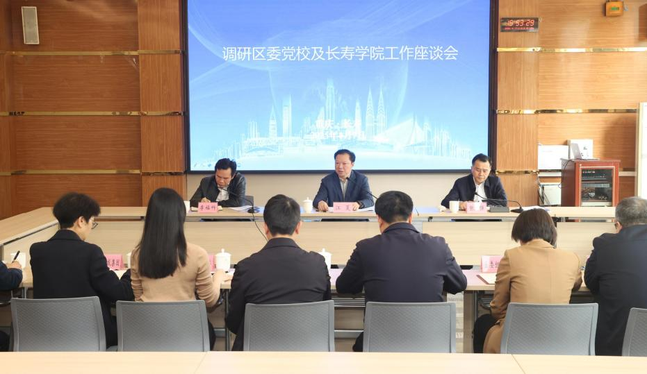 【供稿/长寿学院】4月7日,长寿区委书记、长寿经开区党工委书记江夏带队赴重庆开放大学长寿学院开展调研。区委常委、区委副书记张强,区委常委、区委组织部部长李福科出席调研座谈会。